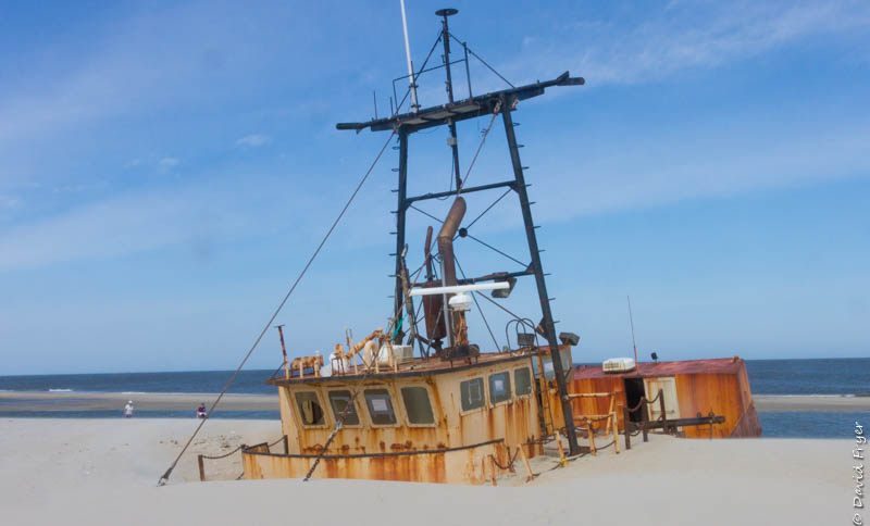 Our visits the lighthouses reminded us that the waters off the Outer Banks are so treacherous that this area is referred to as the “Graveyard of the Atlantic.” The shifting sandbars beneath the waters also cause mariners to run aground. Even today ships can find themselves in peril. We witnessed this near Oregon Inlet where we were camping. We walked down the beach to where a ship, the Ocean Pursuit, had beached. Since the vessel’s shipwreck, the sand has been devouring it and the Coast Guard has yet to dig it out. Seeing this reminded us of the risk that seafarers take and the importance of the lighthouses along the coast of the Outer Banks.