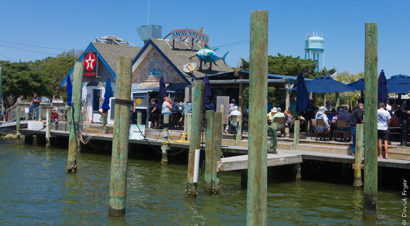 Following our lighthouse visit, we went into the town of Ocracoke which sits on the Ocracoke Harbor. This small lagoon-like body of water is very popular since all the shops, restaurants, and hotels surround it. We ate lunch at a wonderful place called Smacnally’s Waterfront Grill. The seafood was delicious.