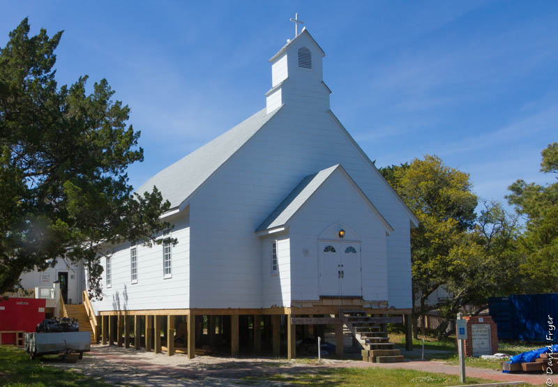 For the remainder of the afternoon we walked around the town which is still recovering from the damage caused by Hurricane Dorian in 2019. The category 5 storm packed 185 m.p.h. winds and caused significant flooding. Fortunately, there was not any loss of life. Due to the extensive flooding, we saw that many of the buildings on the island have been or are in the process of being raised 5-6 feet higher and placed on pilings. Over the past two years, much of the damage has been repaired. Since it was not summer yet, many of the businesses had not opened but they will be open come Memorial Day. Ocracoke has proven that it is a resilient community.