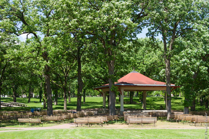 Next to the sculpture garden via an impressive pedestrian walkway is Loring Park. Many folks were out for a stroll on a warm Midwestern afternoon.