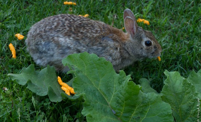 One man walking along the park was feeding Cheetos to the rabbits, doves, and squirrels.