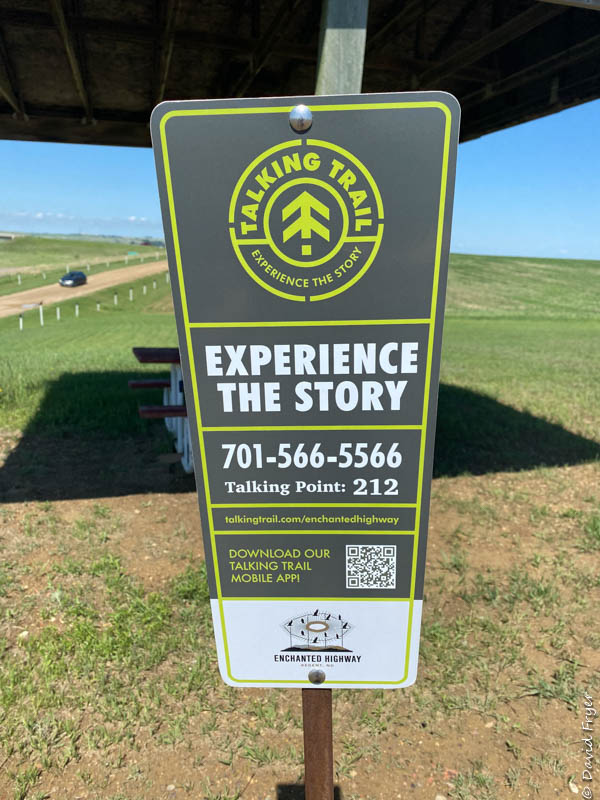 If you go to see the sculptures, there are large pullouts at each stop with most having picnic tables and some information. Each stop has a sign explaining how to hear the audio tour by calling the phone number and entering the location code. There are no amenities until you reach the town of Regent. Each stop has the mileage to the next installation. The town has a gas station, a grocery, a museum, a saloon, a gift shop (ice cream!), a basic spot to park the RV for the night, a Bed and Breakfast inn, and even the Enchanted Castle Hotel. Dickinson, ND is a much larger town with many amenities and is about 45 miles away.