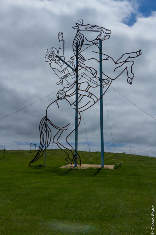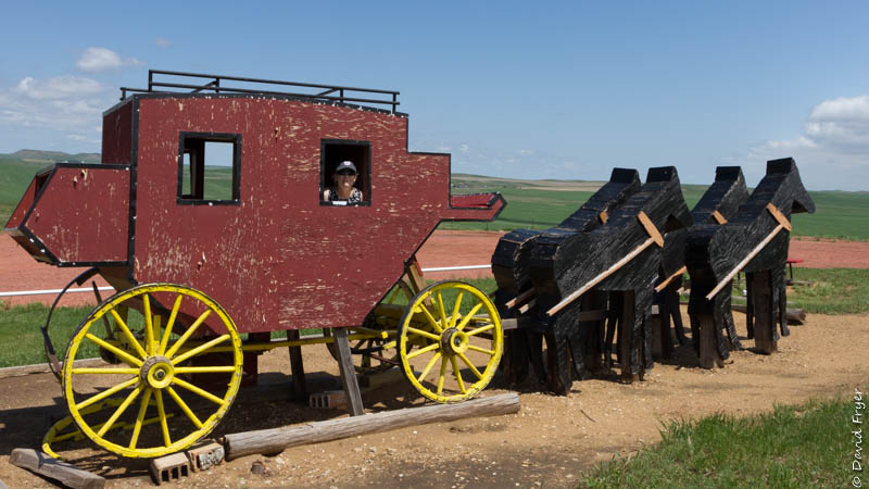 Continuing the artist’s focus on North Dakota, there is a tribute to Theodore Roosevelt entitled Teddy Rides Again. The sculpture of the former president, who was a one-time North Dakota rancher, is an amazing 51 feet high and weighs over 9000 pounds. He is riding his favorite horse “Mulley” who is rearing up over the highway. There is also a wooden stagecoach on display.