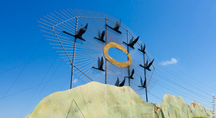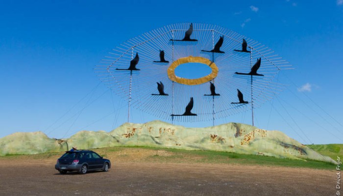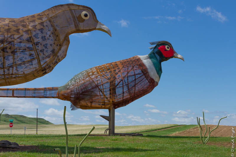 One of my favorites is the Pheasants of the Prairie. These large birds with their chicks took over three years to complete and tower over the nearby highway. The largest is 70 feet long.