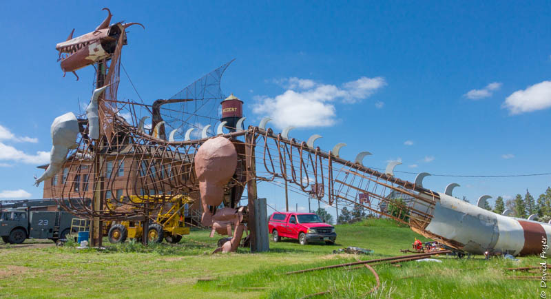We decided to drive around and explore the little town and came upon some large sculptures at the end of town. Sure enough Gary was there welding under his next creation, a large dragon. He was happy to stop and chat with us before resuming his decades long passionate work of building the Enchanted Highway.