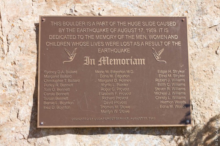 Today the area is dedicated to preserving the memory of those lost and telling the story of the powerful forces that shape our land. Very large boulders that remain on the site are now memorials. School children visit Earthquake Lake to view the canyon lake and to learn about the history of this place.