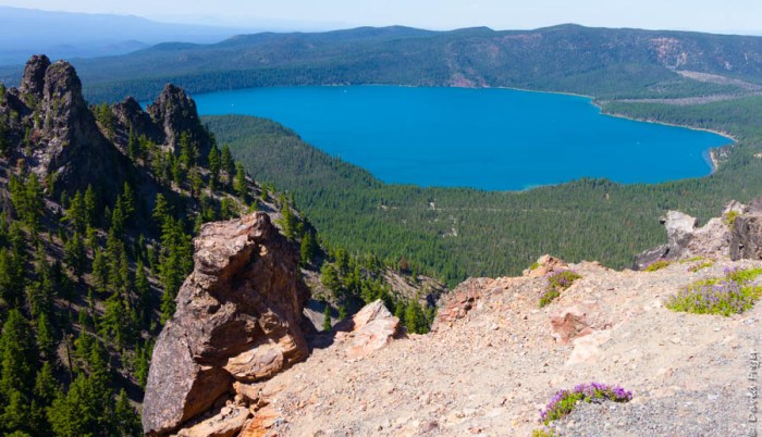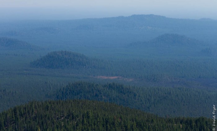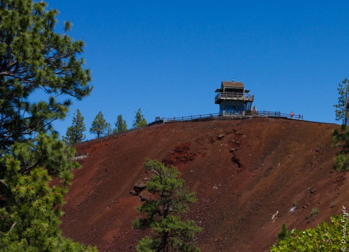 At the 5000 foot summit, there is an active fire tower on top of a cinder-cone volcano with a short trail that circumnavigates the area. A fire tower was first constructed here in 1931. Forest fires are a serious threat in this region as the states of Oregon, Washington, and California have had multiple years of devastating forest fires.