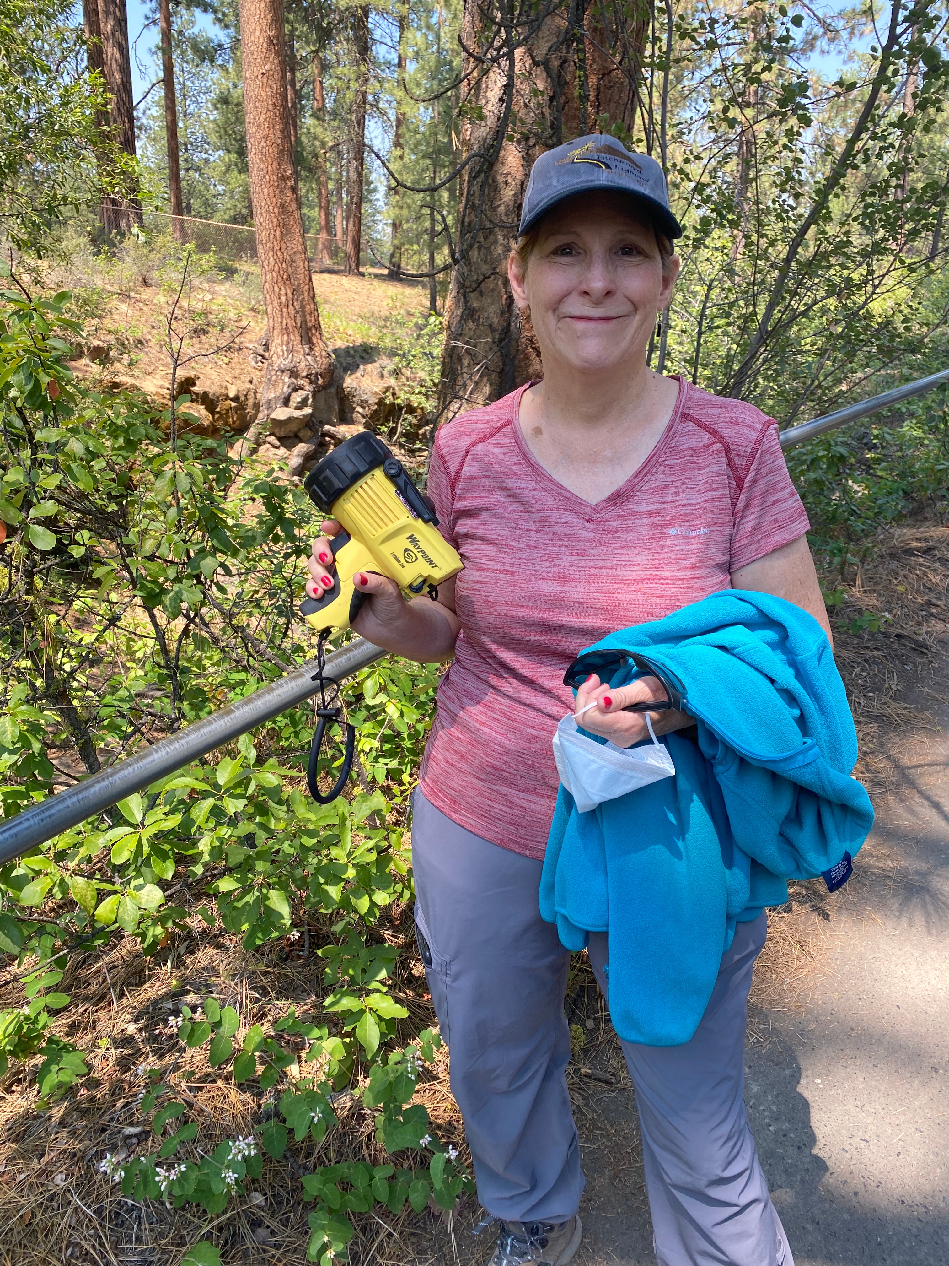 This summer we were able to visit the Newberry Volcanic Monument which is part of the Deschutes National Forest. This area is just south of the well-known town of Bend, Oregon. The weather was warm and we took the opportunity to visit the “lava tubes” that are always around 50 degrees year around.