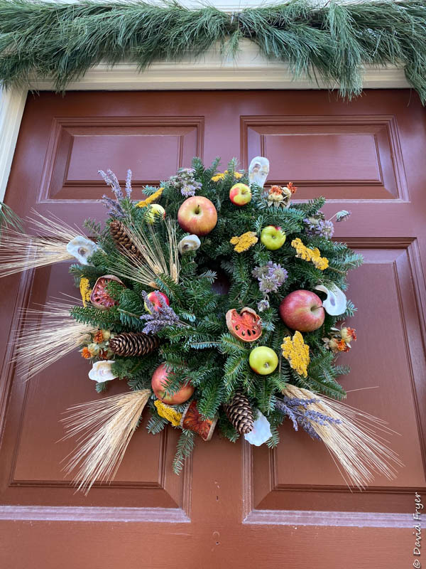 We always enjoy seeing the one-of-a-kind holiday wreaths and entryway decorations. Each one must be made from natural items that were available in the 18th century, such as shells, pomegranates, coffee, cotton bolls, fruits (apples, oranges, lemons, etc.), and local greenery. These decorations must be designed to last for the entire two month season. It is amazing to see the creativity and variety of their creations. Williamsburg anytime, but especially during the Christmas holidays, is such a joy to experience. Many thanks to the Kellys and Medleys for making this excursion even better.