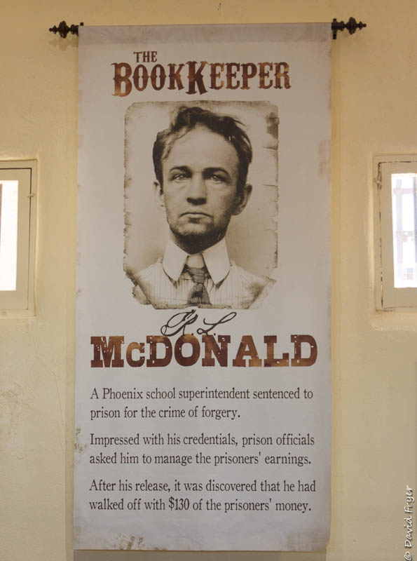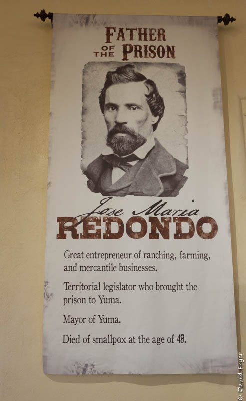 At the prison they tell a fascinating story of how the facility ended up in Yuma. The Territorial Representative from Yuma, Jose Maria Redondo, was at the Legislature meeting where the location of the new prison was to be decided. At the end of the session, when the territorial legislators went to lunch, he stayed behind in the chamber, marked out the town of Phoenix in the bill, and substituted Yuma in its place! He later became mayor of Yuma and is known as the “Father of the Yuma Territorial Prison.”