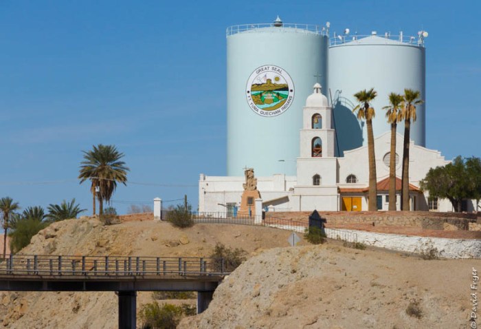 At the time, the prison was built on a bluff at the confluence of the Colorado and Gila Rivers. The Gila is now located about five miles upstream but the Colorado still flows below the facility. From the prison, looking across the Colorado River, you can see the Saint Thomas Mission and the Quechan Indian reservation land.