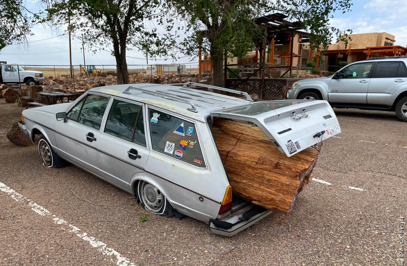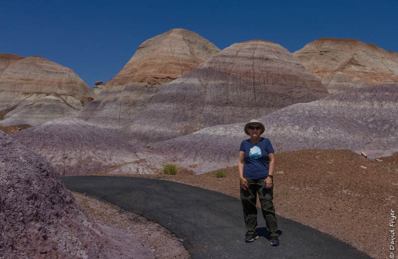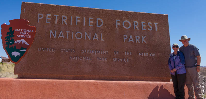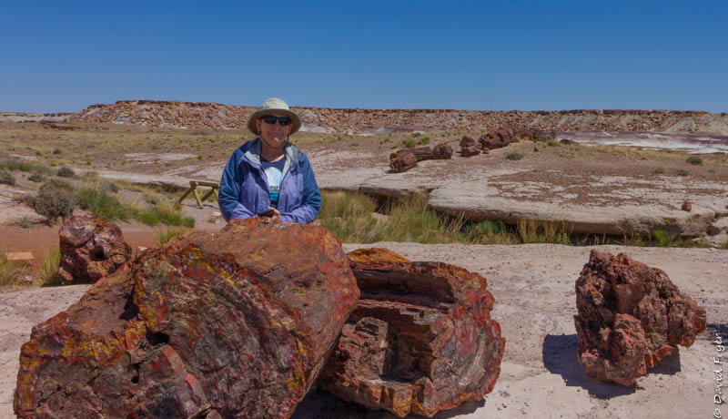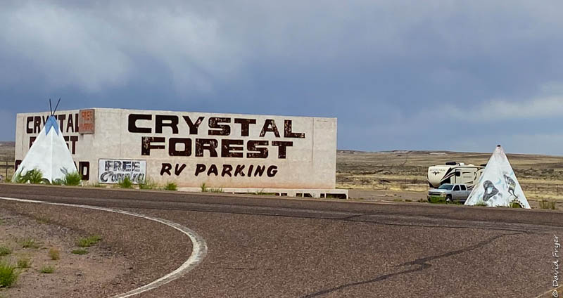 We weren’t sure that we wanted to leave the Mogollon Rim with its beautiful scenery and cool temperatures but, since we are heading north, we wanted to visit the Petrified Forest. We found that at the southern end of the park there is a gift shop that will allow you to camp for free, so it was a perfect spot for us. The gift shop itself is like a museum with a large collection of polished petrified wood, gems, and other items.