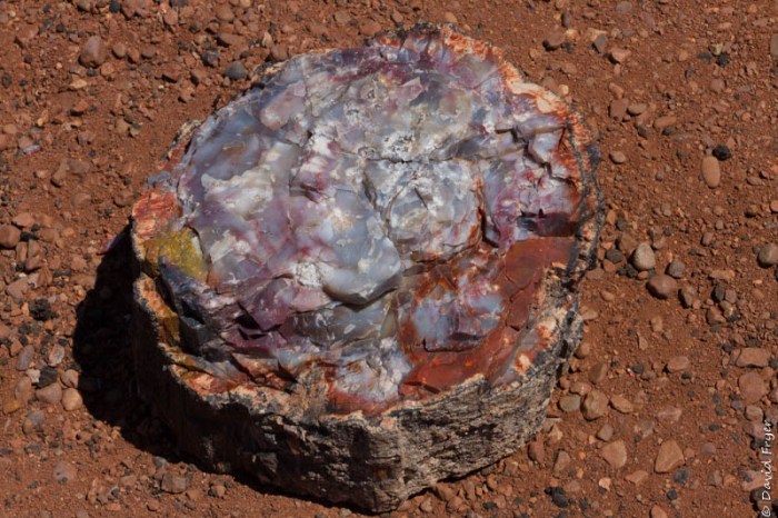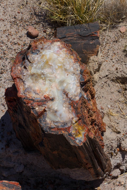 About 200 million years ago, during the Late Triassic Epoch, trees in this region died and fell into river. The waterlogged trees were covered in silt, sand, and volcanic ash. The minerals in the water, especially silica (quartz) seeped into the logs slowly replacing the wood fibers. Other minerals also found their way into the wood creating the vibrant colors found in the “trees” in this park. While there are many other places to find petrified wood, this park has the highest concentration in the world.