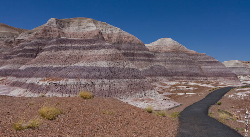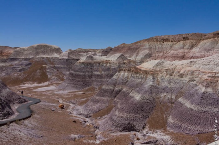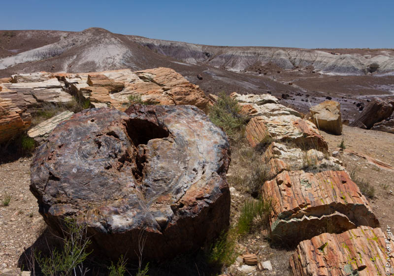 We started our exploration at the southern end of the park on the Giant Logs Trail. The mineral rich trees are now brittle and were once covered with large amounts of dirt. Under the stress of this weight the petrified trees broke apart much like a piece of chalk snaps in half under pressure. The landscape is littered with these pieces of a forest from millions of years past, which look like they were cut by machine.