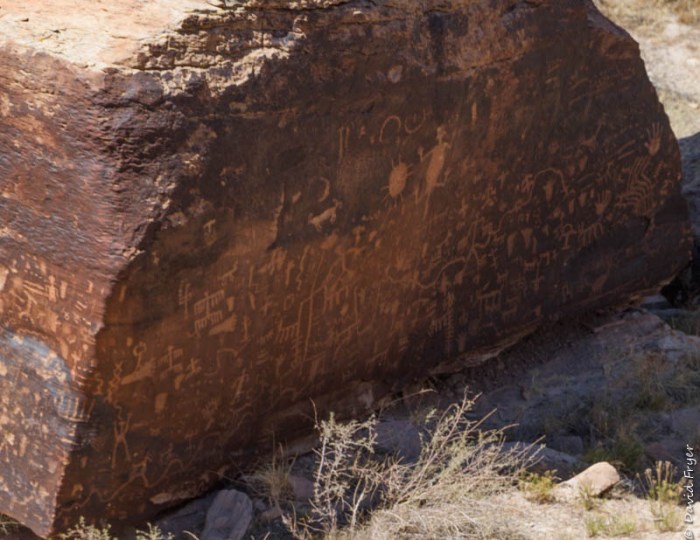 We also visited Newspaper Rock which has hundreds of petroglyphs etched in it. Unfortunately, visitors are not allowed to view these at eye-level and are confined to a viewing spot high above the rocks.