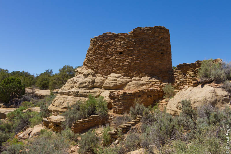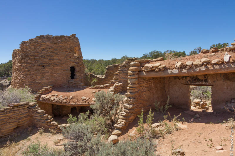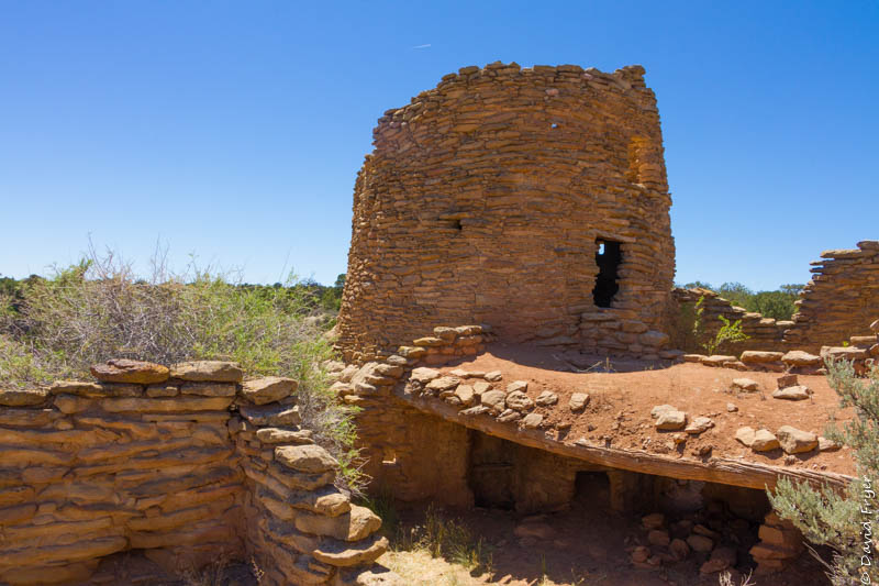Located on the Francis Mesa, the Francis Canyon Pueblito is one of the three largest and well-preserved defensive complexes in this area. Archaeologists have determined that it was built in three stages. The first was in 1710-1714, the second in 1722, followed by the third in 1735-1736. Earl Morris was the first to excavate this complex site in 1915. This pueblito boasted 23 ground floor rooms, 12 two-story rooms, 3 three-story rooms, and a four-story tower. While not all of the complex is intact, you can see three of the four-stories of the tower and some surrounding structures. The tower sits on top of a massive boulder. These lookout posts and defensive buildings were placed on the edge of the canyon. From this vantage point, the residents could spot enemy advances. It appears that there were conflicts between the Navajo and the Utes and Comanches during this period. The Navajo masons also built “peep holes” near the entrances for additional security. There are other interesting features in these ruins, such as peg holes, storage bins, and hooded fireplaces. It is believed that they abandoned this site in 1745. Archaeologists are not sure why they moved on.
