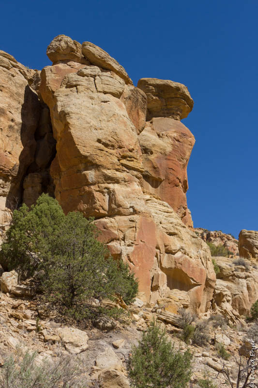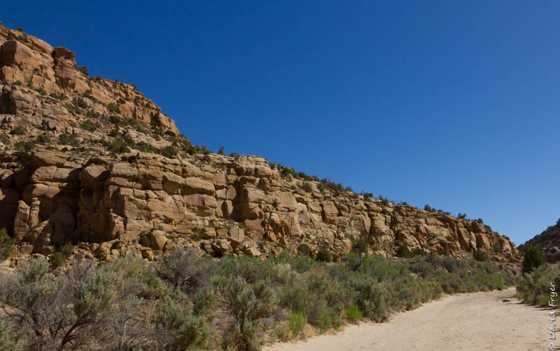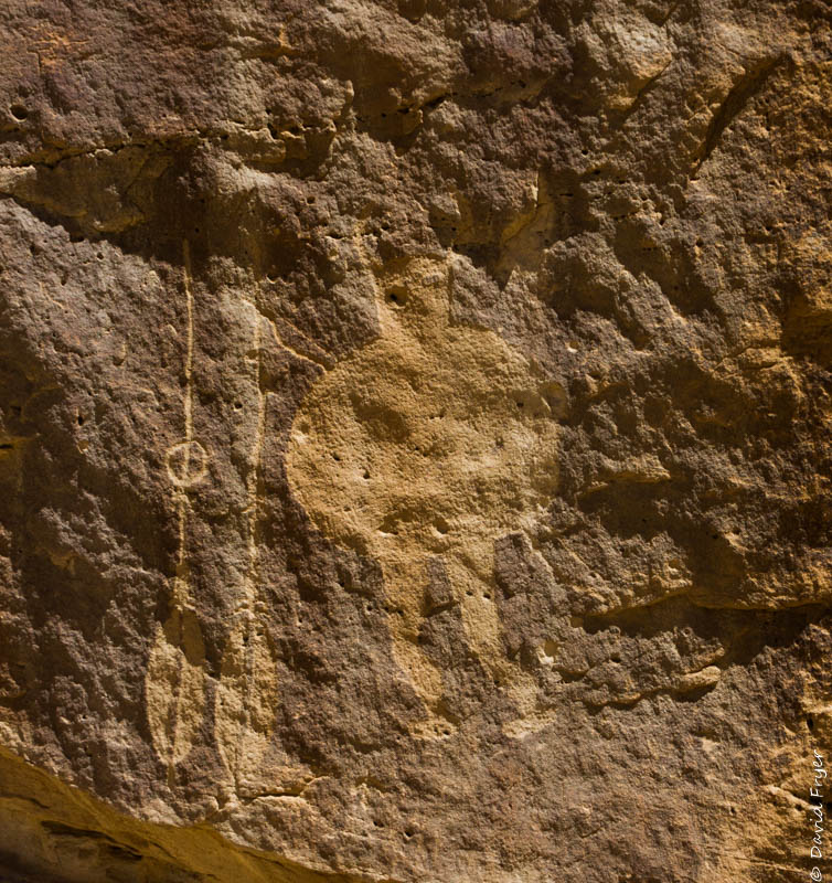 Note that all of these sites are obscure and in a remote area. To gain access to this district, it is recommended that you have a four-wheel drive vehicle during dry season and it is required during wet season. The petroglyphs are 20 miles from any paved road and you have to cross sandy washes to reach the Crow Canyon Archaeological District. There is some signage along the route but we found that, at a critical turn off the rocky gravel road, the sign was missing. Luckily, Glenn and Marsha knew where the turn was – just past a fallen tree! There is no cell service available in the area. Bring lots of water because, even on a cool day, it can be very hot in the canyon.