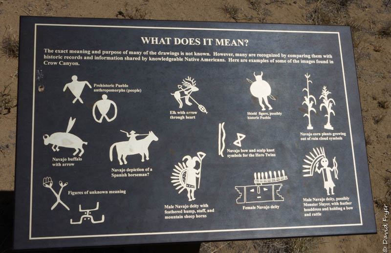 Crow Canyon Archaeological District is part of the Navajo lands. When the Navajo inhabited this region, they built defensive sites called “pueblitos” and also carved petroglyphs into the canyon walls and also drew pictographs on the walls. The petroglyphs were carved using stone, wood, or bone implements.