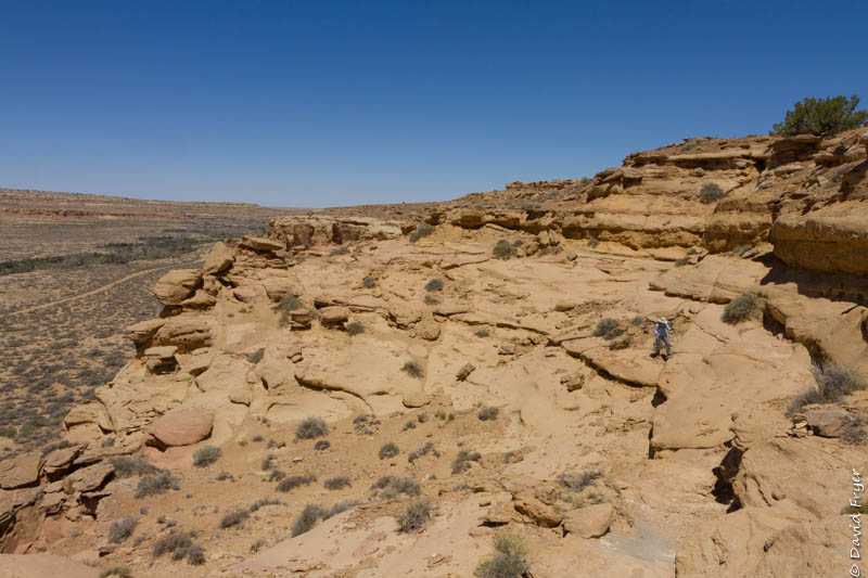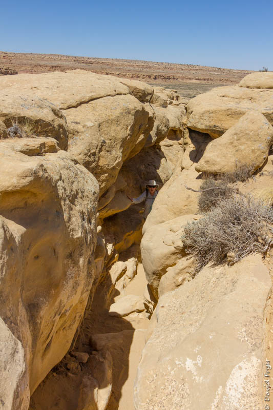 We took their advice and hiked the trail to the Pueblo Alto. The trail head is at the end of a one-way loop road and it starts with a steep rock-scramble through a slot to the mesa above. The best part of the trail is the view of the massive Pueblo Bonito below. This large complex is the highlight of the park with its numerous kivas, rooms, and plazas. It is easy to see its unique “D” shape from the mesa above.