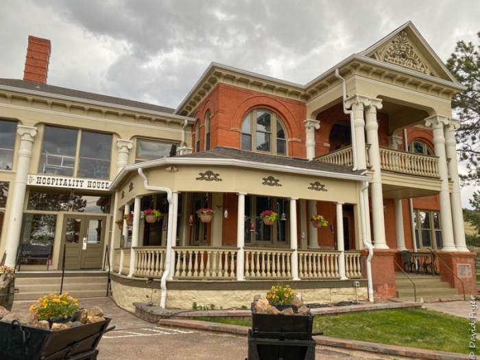 We parked the Bighorn in an interesting location in Cripple Creek. The Cripple Creek Hospitality House is located in the former Teller County Hospital built in 1901. At that time it was home to state-of-the-art medical care for the region. Now it has been restored as a 14 room Victorian Hotel with plenty of antiques plus an RV park out back. The porch and grounds are a great place to relax and enjoy the cool mountain air.