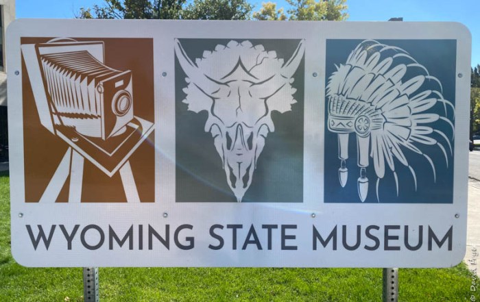 In the shadow of the picturesque gold-domed State Capitol Building in downtown Cheyenne is the Wyoming State Museum. This museum established in 1895 was a great place to begin our visit because it provided an overview of important events and places in the state. Their collection is very wide-ranging and covers many years of Wyoming history and culture beginning with the geology and Native American tribes to the arrival of the settlers and the railroad to life in the American West in the 1800’s to the importance of the National Park Service in the state. Here are a few highlights: