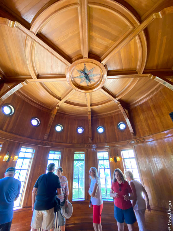The most unique room in the mansion is the Ship Room. It is on the second floor and it has wooden floors. Its teak lined walls have decorative carvings. The ceiling features a compass that is attached to a weathervane on the roof. Mr. Crosley monitored the wind direction from his location. Although this was an impressive mansion and location, he did not spend much time at Seagate because he was very busy with all of his business endeavors.