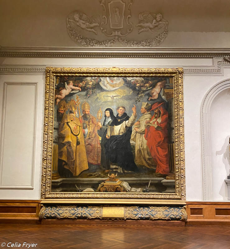 Isabella Clara Eugenia, the ruler of the Spanish Netherlands, commissioned Rubens to design a series of tapestries for the Convent of the Descalzas Reales in Madrid. It is thought that she also asked Rubens to make identical paintings of these tapestries to hang in her palace in Brussels. In 1926, John Ringling purchased four of the seven paintings in the collection called “The Triumph of the Eucharist.” The Museum acquired a fifth painting in that series in 1980. Interestingly, Ringling constructed both galleries in such a way that the works of art appear to extend into the room. For example, the columns in the gallery replicate those seen in Rubens’ works.