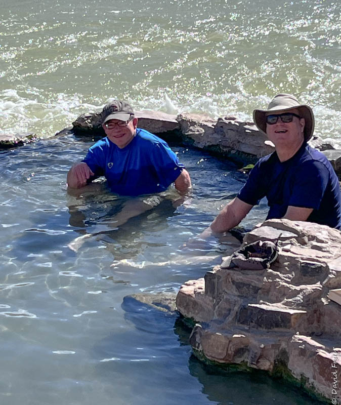 Part of the river adventure is to stop for lunch at the local hot springs. The inviting warm water is adjacent to the river and is a popular place.