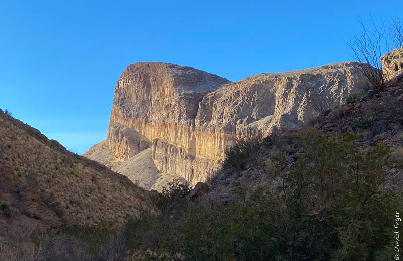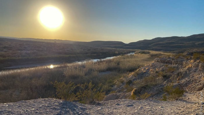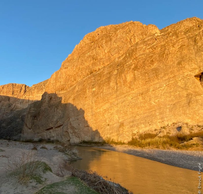 It was time to explore the lower elevations of the park and head toward the Rio Grande Village and its views of the famous river. One of our first vistas was the river canyon walls at sunset.