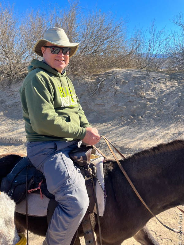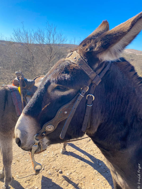 On the Mexican side there are numerous donkeys waiting to give you a ride into town. This is not traveling in the fast lane. Your guide just walks along beside the donkey-riding tourists and easily keeps pace.