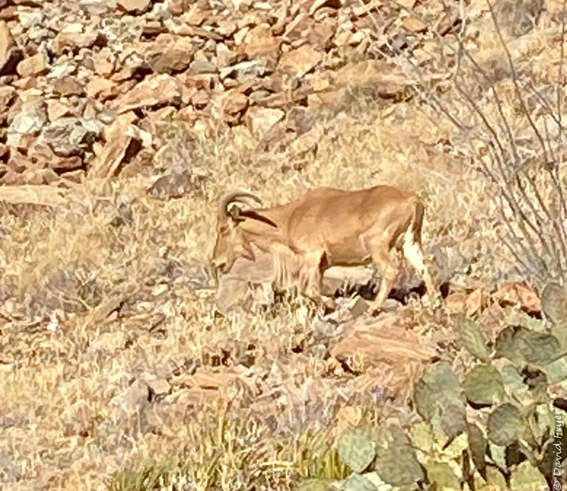 The road between Terlingua and Castolon has many overlooks and trails. One of these that was recommend to us was the Lower Mesa Burro Pouroff trail. We were especially lucky to see some of what we thought were bighorn sheep but we later determined were aoudad. The Barbary sheep (aoudad) of North Africa are considered invasive in Big Bend. Studies are now underway to determine the impact they are having to native plants and animals.
