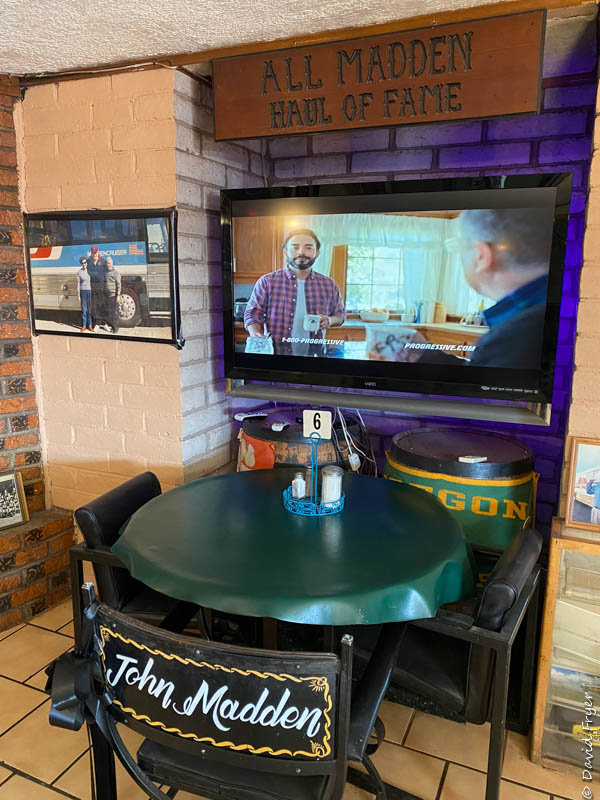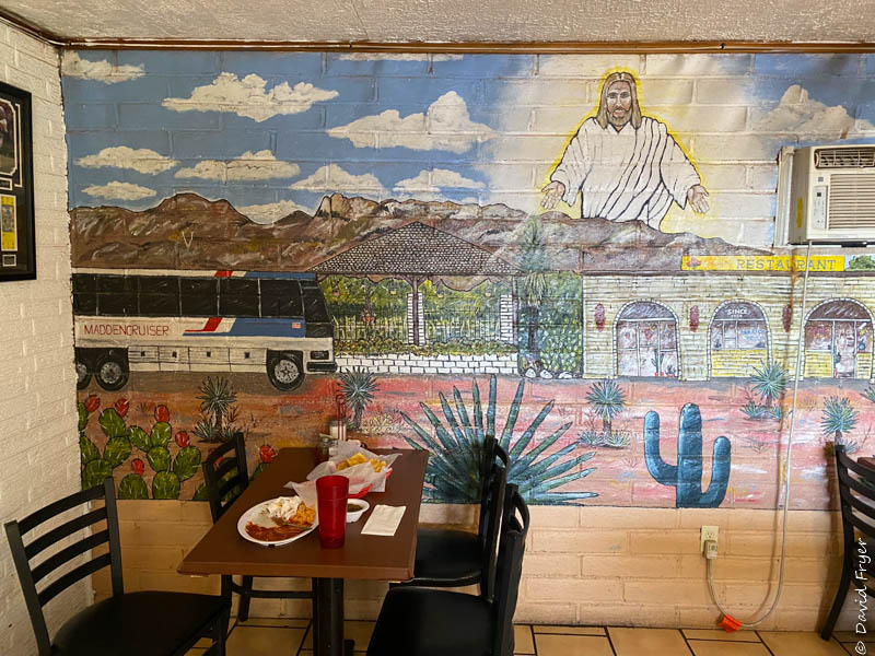 It was time for the long drive back to El Paso. We traveled through the town of Van Horn and ate at a Mexican Restaurant that had the John Madden Museum, complete with a mural on the wall with Jesus looking down on the Madden bus cruiser.
