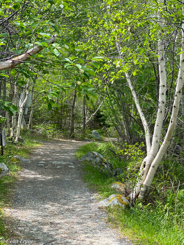 Another day we hiked some trails in the provincial park. These were short hikes along the beach offered more views of the shore. One of these was the Port Joli Trail. As we were on our way to back our campsite, we startled a spruce grouse. She was not happy that we had invaded her space where she was nesting and she let us know it. Now we understand the meaning of the phrase “to ruffle your feathers.” Hers certainly were.