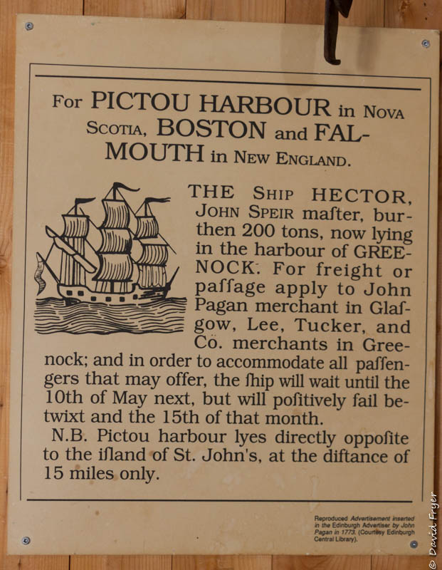 The Hector Heritage Quay celebrates Pictou’s Scottish heritage. As mentioned in a previous post, the Scottish Highlanders came to Canada in search of a better life. Many of them landed in the port of Pictou. Some stayed in the town and there are still several stone buildings downtown that date back to that era. Others migrated to Cape Breton and Prince Edward Island. The three-story museum tells the story of the first group of Gaels that left Scotland aboard the Ship Hector. Due to a bad storm, it took them 10 weeks to make the journey to Canada. During that time, most crossings took 4-6 weeks. Due to the extensive delay, 18 passengers died during the journey. On September 15th, 1773, the ship delivered 189 passengers to Pictou Town. These were the first, but not the last, Scottish immigrants to arrive in Pictou earning it the name “The Birthplace of New Scotland.” Forced from their ancestral lands, in the following decades over 50,000 Gaels emigrated to Nova Scotia and Cape Breton.