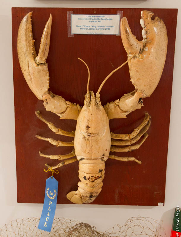 Today, lobstering is the life blood of the fishing industry. David and I met Codie Goodman, the manager and curator of the museum, and she spent a long time talking to us about lobsters. She showed us the museum’s touch tank that was filled with a number of rare lobsters. Each of them had been given a name, often by children who visit the museum. Codie told us that it takes seven years for a lobster to weigh one pound and reach sexual maturity but lobsters also have long lives, typically 50-70 years.