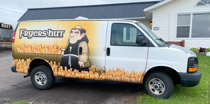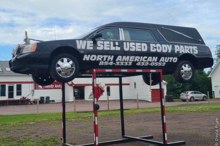 When driving around the island, you will never know what you might stumble into, whether it be a religious order capitalizing on the thousands of PEI potatoes or an auto body shop with a skeleton crew.