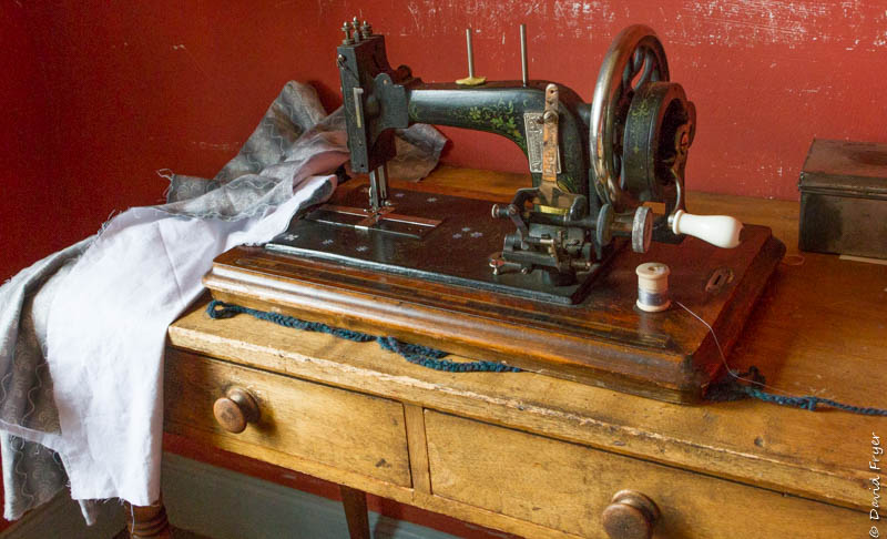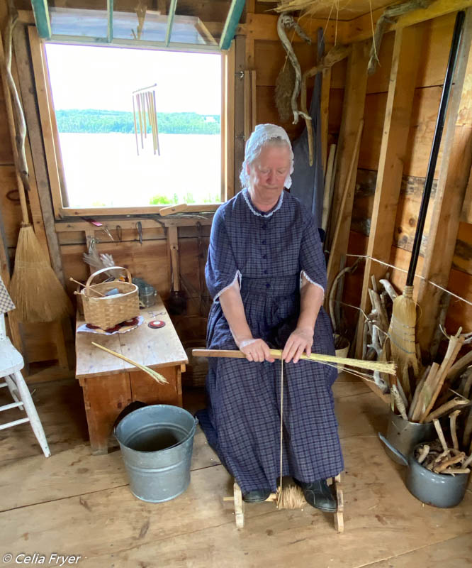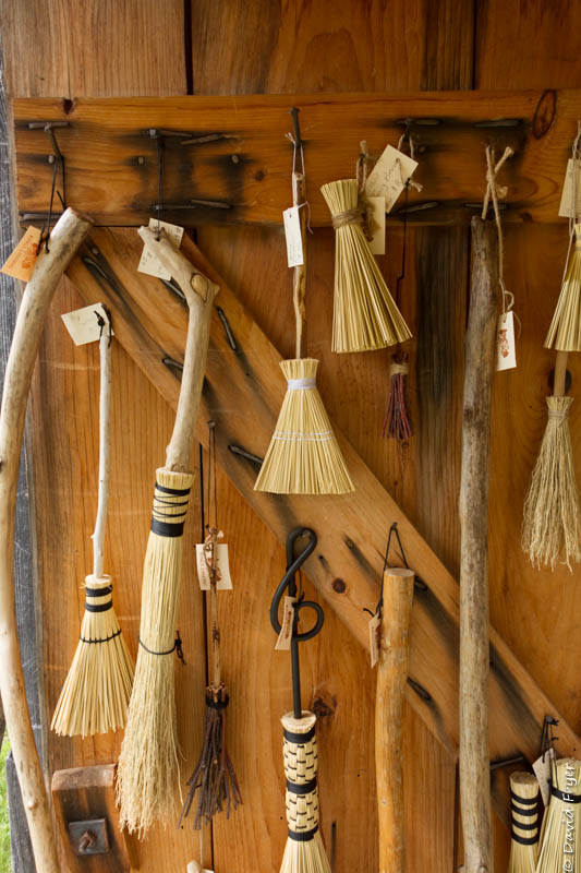 At the broom shed we learned about broom making. Notice the woman is operating the foot winder to create tension as she uses twine to tie the broom corn to the handle.