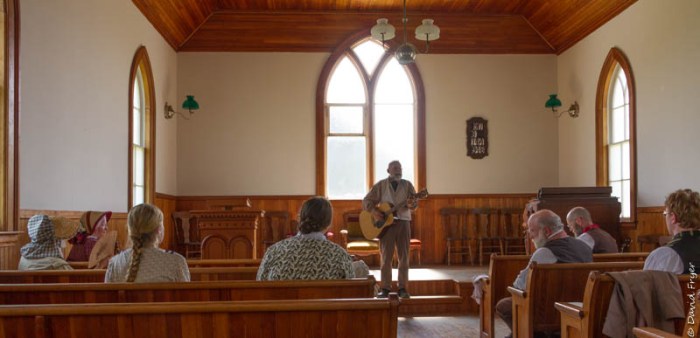 At the Riverside Presbyterian Church there was a gathering of the interpreters. They were all in period dress and were enjoying music as we peeked inside.